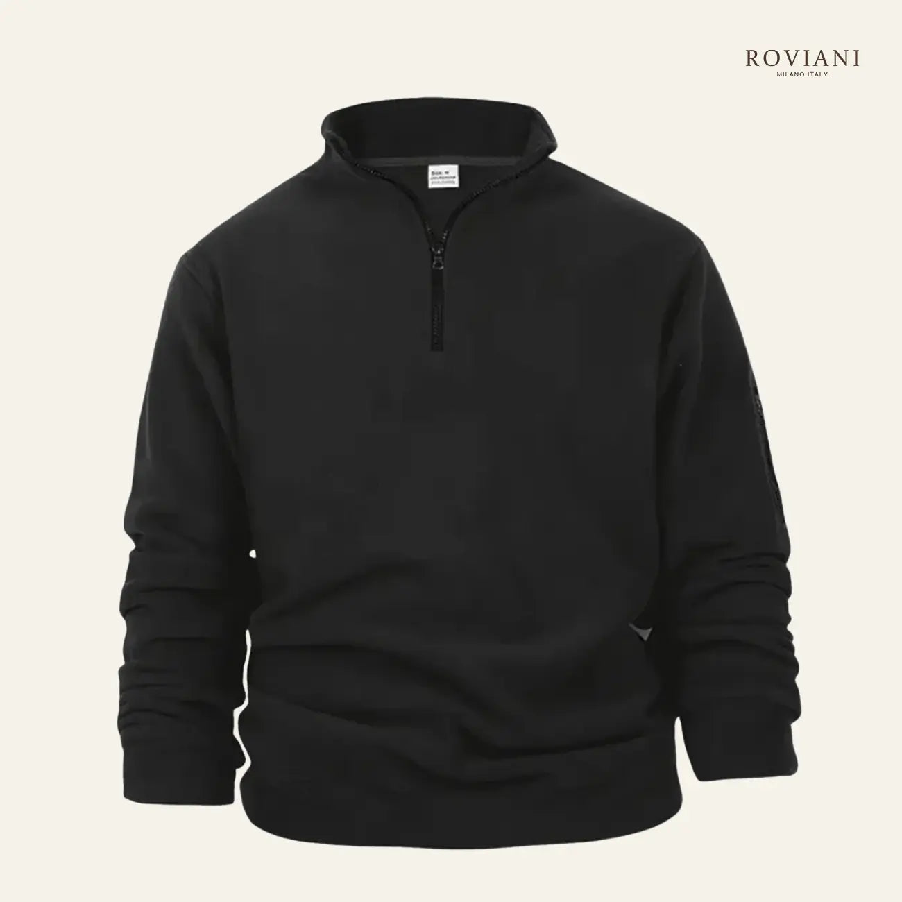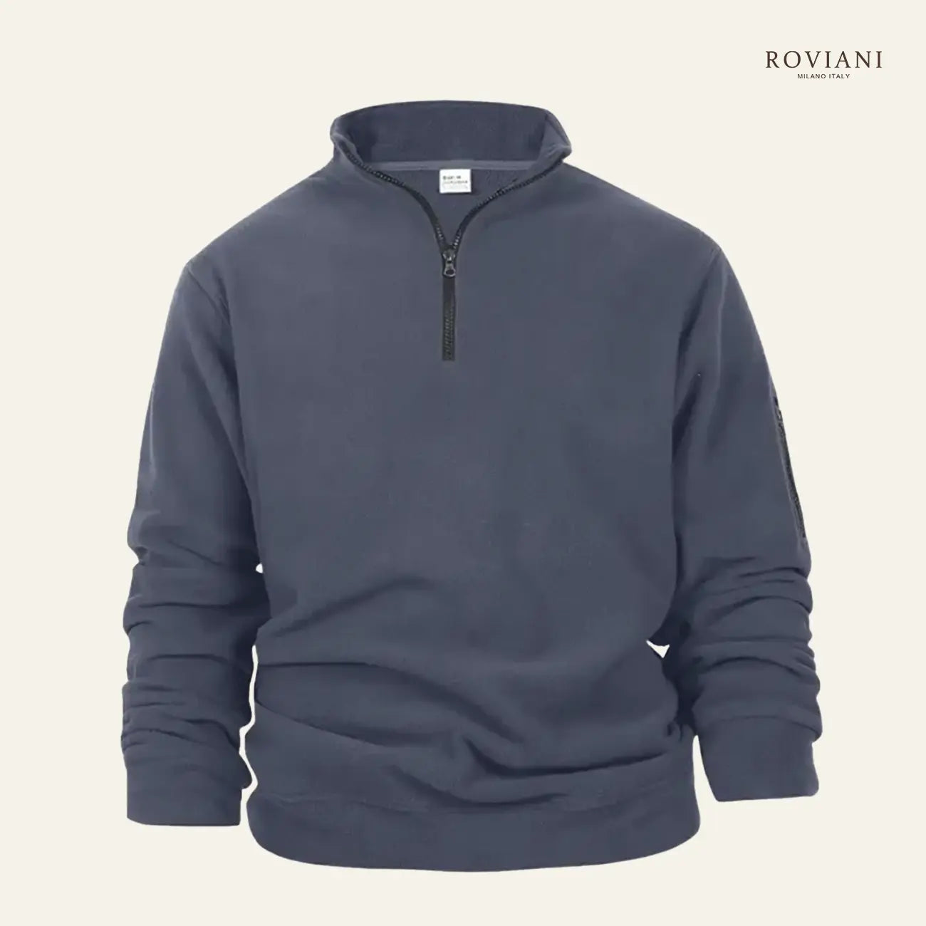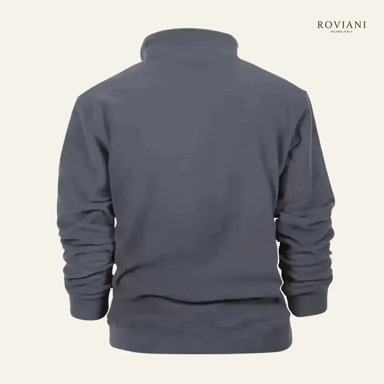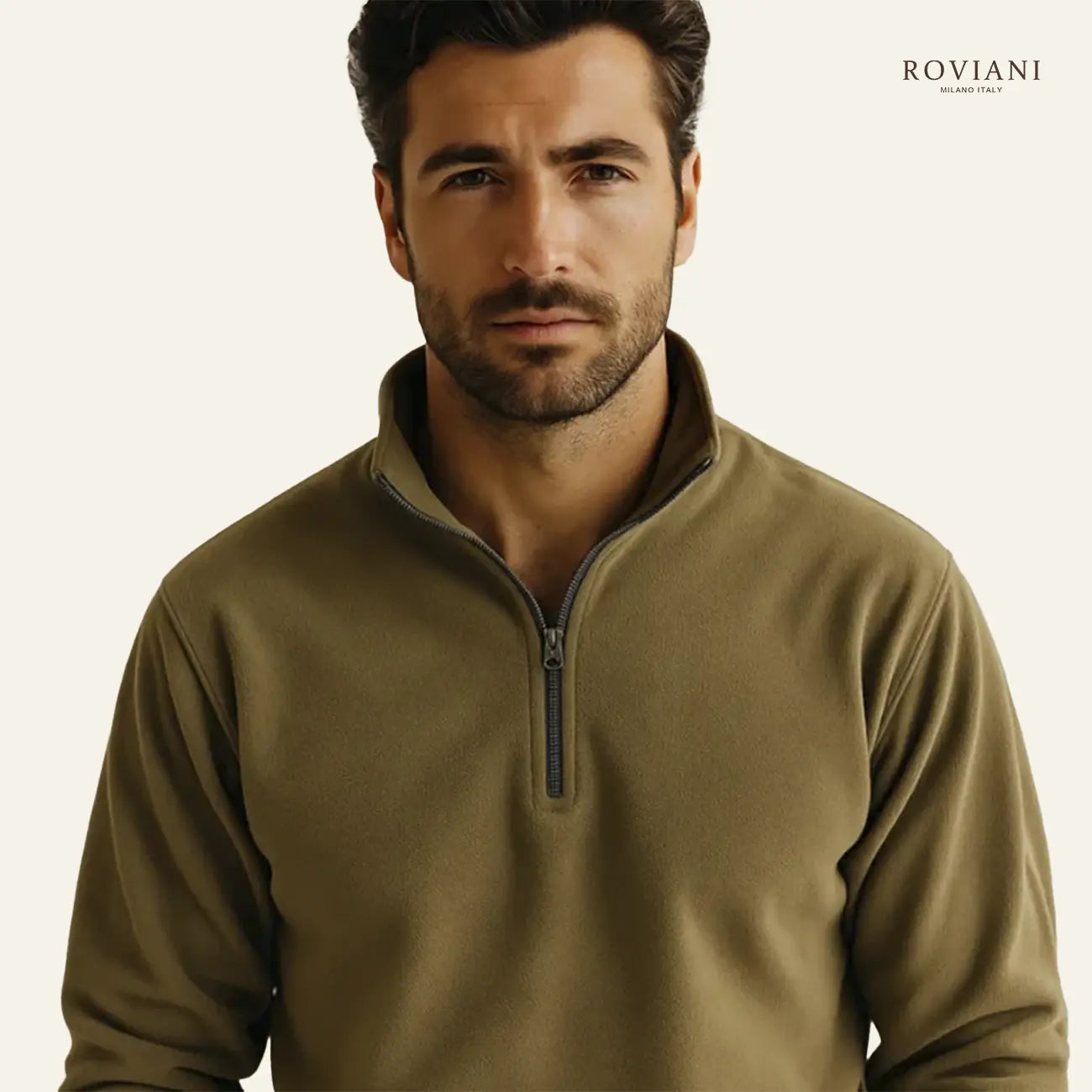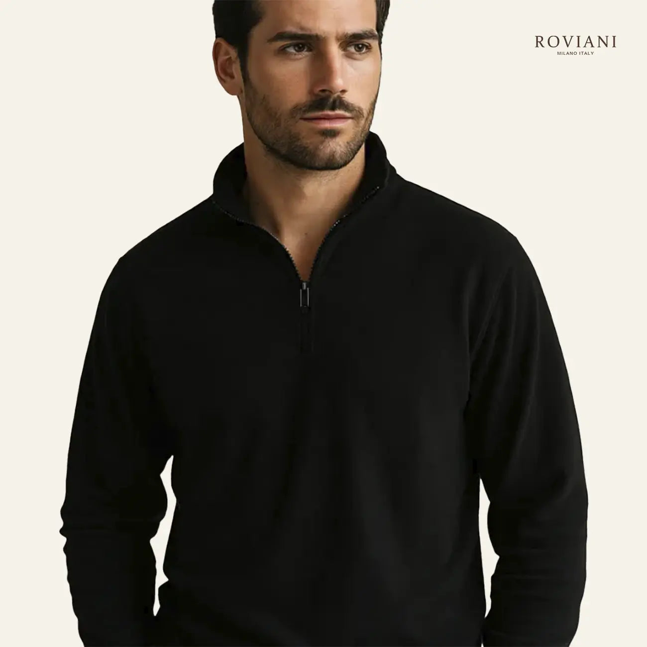 Finiture: mezzo collo con zip metallica, polsini e bordo a costine per un fit morbido e funzionale a lunga durata.
